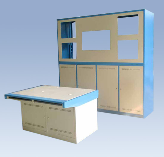 內(nèi)部配置:每聯(lián)下部小柜內(nèi)安裝托盤一塊,便于安裝設(shè)備??蛇x配19英寸標(biāo)準(zhǔn)安裝立梁。